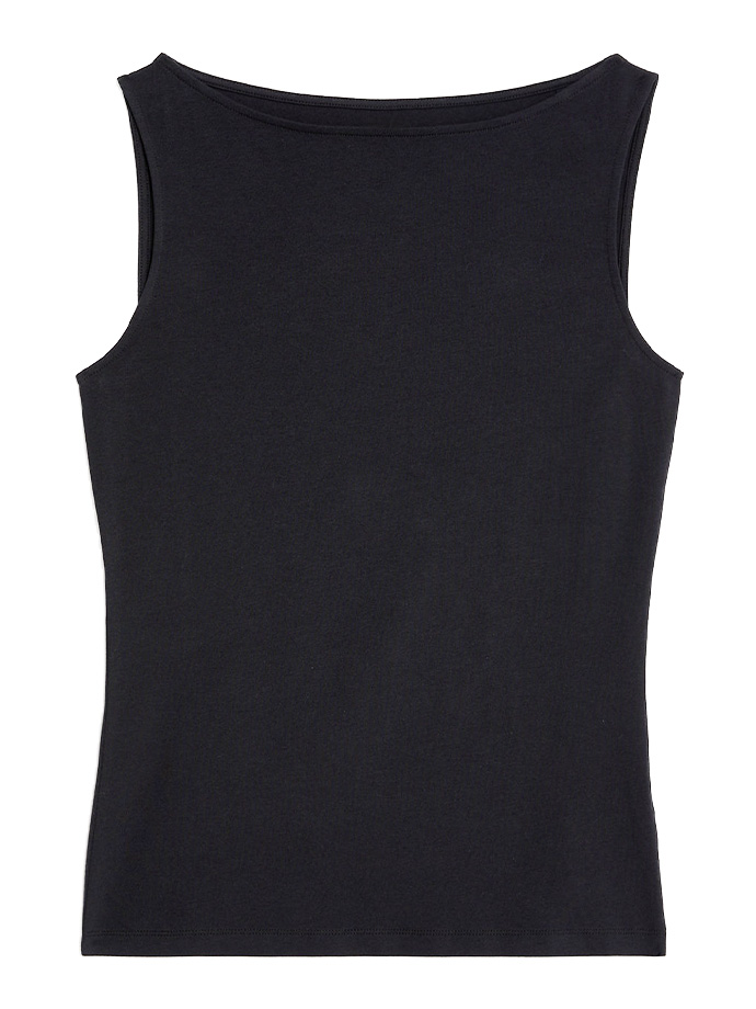 Топ выполнен из качественных материалов, подчеркивает фигуру и придает образу элегантность. Черный цвет универсален и легко сочетается с другими элементами одежды.
